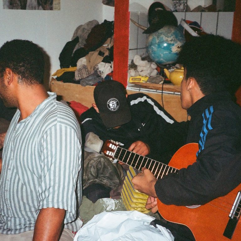 Faite d’ami.e.s, de militant.e.s pour le droit au logement, de personnes sans-papiers, de curieu.x.ses, de hustlers, de paumé.e.s, de voisin.e.s qui rendent visite, la petite bande évolue dans les décors de bric et de broc qu’elle s’approprie au fil des propriétaires énervés, du temps et des ressources trouvées, offertes, collectivisées. Je documente ici cette histoire qui témoigne de l’évolution des idéaux, des attentes et de la vie en collectivité.